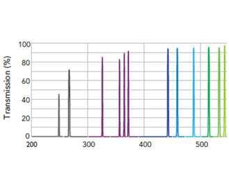 窄帶干涉濾光片,通常是指單一波長或者半高全寬(FWHM)較窄的干涉濾光片。窄帶干涉濾光片有幾個重要的參數(shù):中心波長、半波寬度、峰值透過率等。