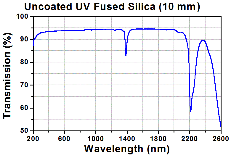 熔融石英材料,適用于深紫外到近紅外波段,熱膨脹系數比較低,可用在紫外或者大功率應用場合。