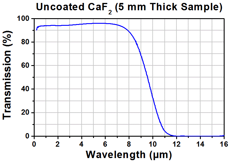 CaF2材料,適用于深紫外到中紅外波段,可以在0.13um~10um范圍內有很好的透過率。