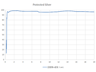 鍍銀膜反射鏡,在可見光到近紅外具有很高分反射率。在450-2000nm范圍內的平均反射率Ravg>97.5%,是所有金屬反射鏡中反射率最高的,同時在2-20um的波段范圍內具有很高的反射率,Ravg>96%。
